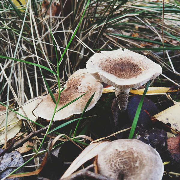 The woodland air is thick with the scent of leaf mould and damp bark. Clusters of cream-coloured fungi rise from the fallen leaves, soft domes of living architecture. The season has turned the ground into a kind of tapestry—russet, gold, and faded brown stitched with threads of green moss.