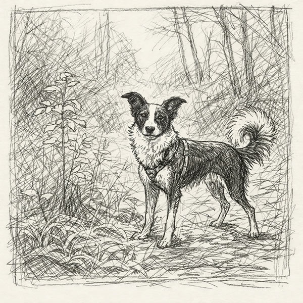 My companion is Carys, a faithful Border Collie whose bright spirit and curiosity form the quiet compass of our wandering. She moves with an instinct older than any trail, her paws tracing messages left by the earth itself. She is the steady pulse of our adventures—the heartbeat beside mine.