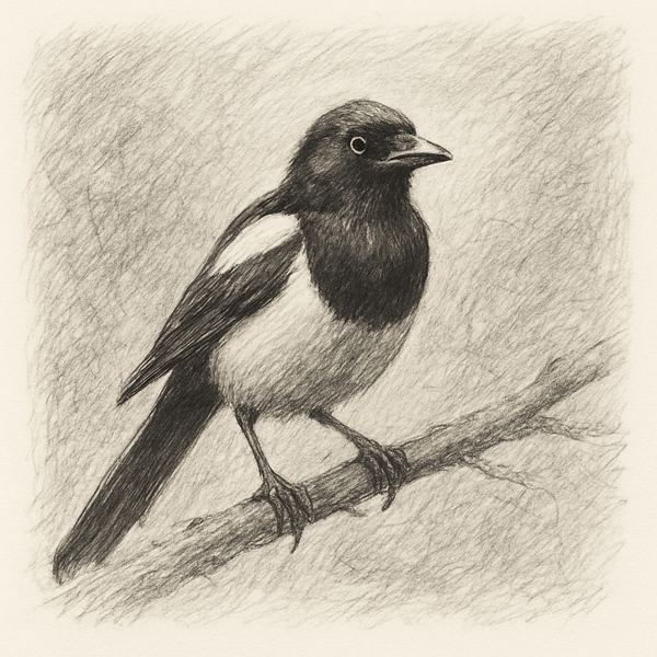 A single magpie glides across the path ahead, wings outstretched like an ink stroke against the grey. It pauses on a branch and regards me with bright curiosity. For a moment, it feels like a greeting—a nod of recognition between travellers. I offer a small smile in return.
